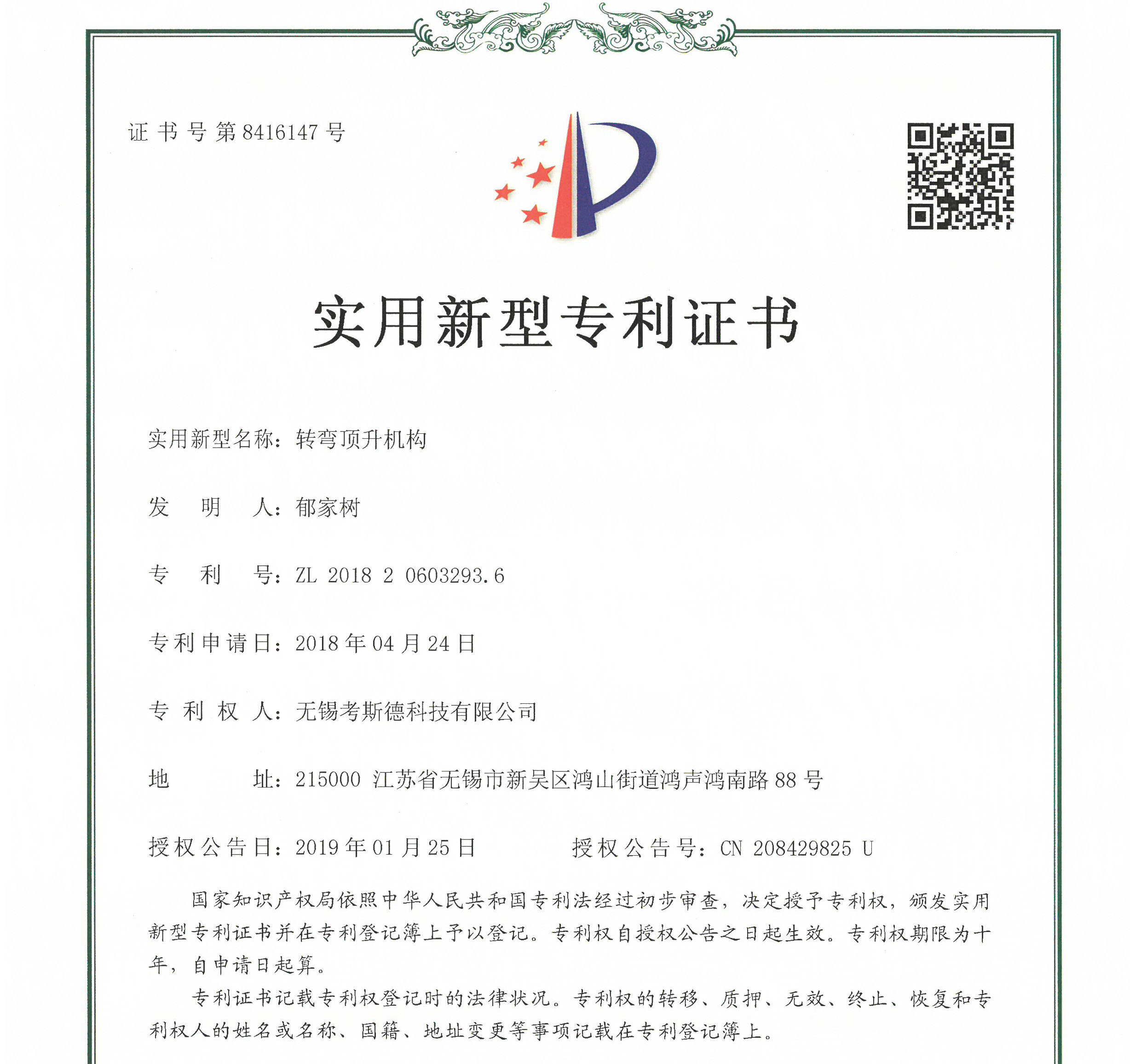 实用新型专利证书 专利号:ZL 2018 2 0603349.8
